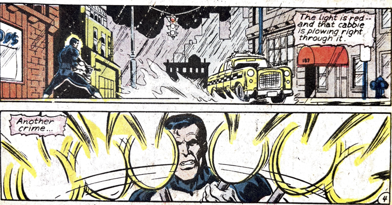 In a story arc spanning Spectacular Spider-Man #81 to #83, we see a recently escaped Punisher randomly shoot a domestic abuser through a window, fire on civilians for littering, and shoot up a yellow cab for running a red light.